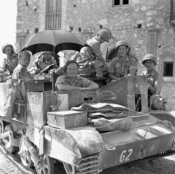July 19, 1943 , Sicily - “With the leading infantry now engaged in levering the enemy from positions covering the road running northwards from Valguarnera towards Leonforte, 4th Field Ambulance and 1st Field Dressing Station, with 1st Field Surgical Unit attached, opened conjointly an advanced dressing station and advanced surgical centre in Valguarnera. The building occupied was a large school that had been in use as an Italian hospital. It contained large stocks of medical supplies, including surgical instruments and dressings. But also inherited were some 60 enemy patients (civilian and military) whose condition, along with that of the building, was recorded as ‘indescribable’.”