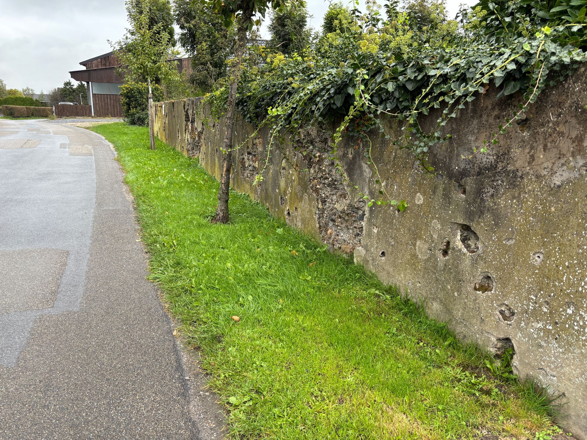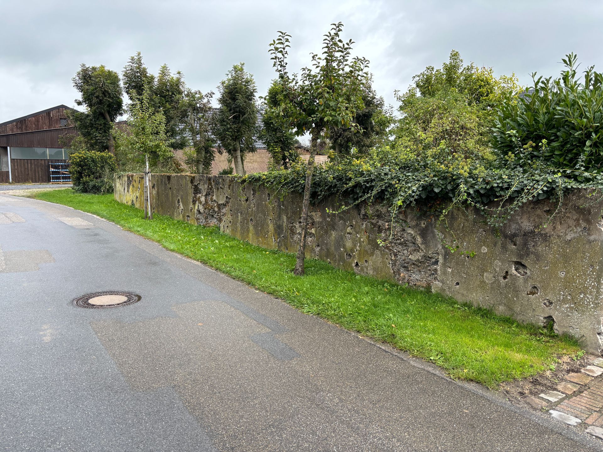 - The wall of a former barn which was destroyed by the battle. The wall still bears the scars of the fierce fighting.